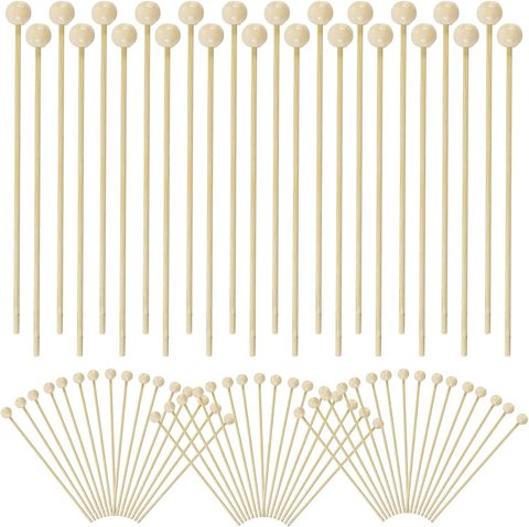 100 pièces 6 pouces Rock Candy Sticks avec boule bois Swizzle Sticks bois gâteau bâtons pour Hard Rock Candy