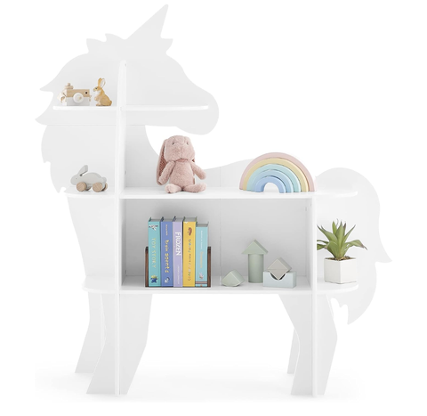 ชั้นวางหนังสือดีไซน์ไดโนเสาร์สุดสร้างสรรค์ที่ทันสมัยพร้อมลิ้นชักเก็บของกระเป๋าหนังสือสำหรับเด็กที่ได้รับแรงบันดาลใจจากมอนเตสซอรี่สำหรับห้องนั่งเล่นและเวิร์กชอป