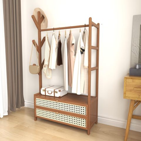 ชั้นวางเสื้อผ้าไม้ไผ่202509ชั้นวางของ5ชั้นพร้อมตะขอแขวน6อันตู้เสื้อผ้าไม้ไผ่