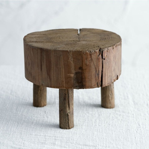 Kleiner massiver Zedernholz hocker Crack Pflanzenst änder rustikale lebende Kante zurück gefordert Holz ständer