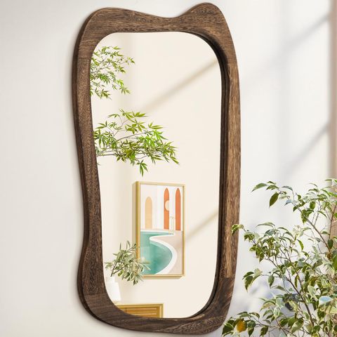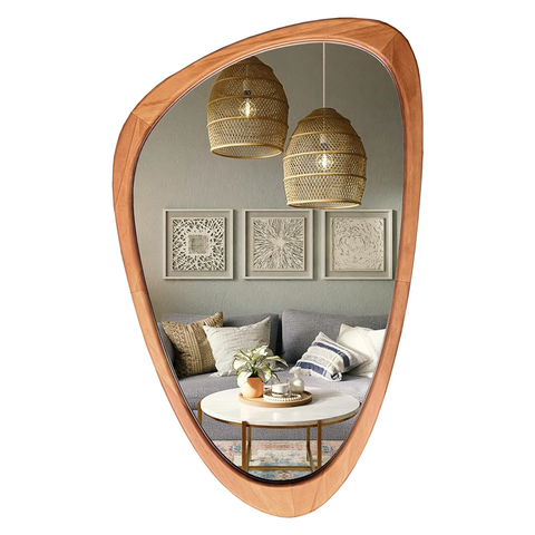 202412 miroir asymétrique miroir irrégulier décoratif pour chambre salon miroir en bois pour décor moderne du milieu du siècle