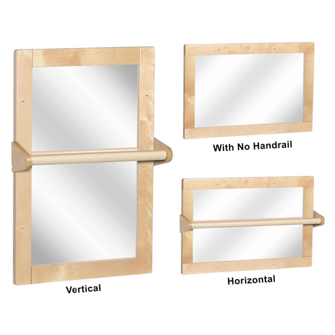 202412 bébé Montessori cadre en bois miroir de sécurité non éclatant avec 2 barres de traction coordination infantile petit miroir pour 6-18 mois