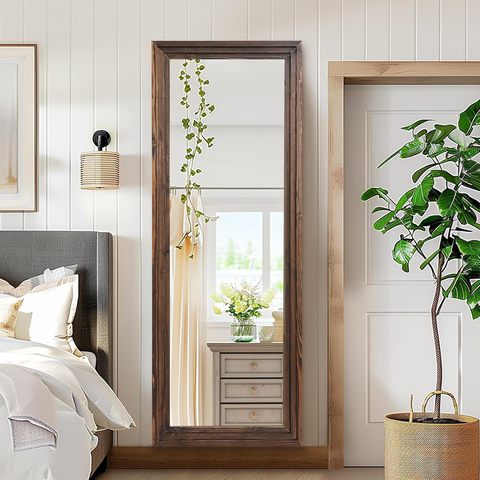 202501 miroir pleine longueur cadre en bois massif miroir de sol arqué avec support pour salon chambre suspendu debout ou penché
