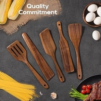 Набор деревянных лопаток, 5 шт., деревянные ложки из Натурального Тикового дерева для приготовления пищи, антипригарная посуда, набор кухонной утвари