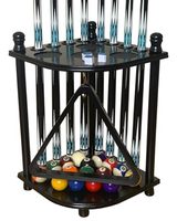 Floor Pool Cue Rack Hold 8 Cue Sticks & Billiard Accessories. Corner Stand Pool Cue Holder Made of 100% Solid wood