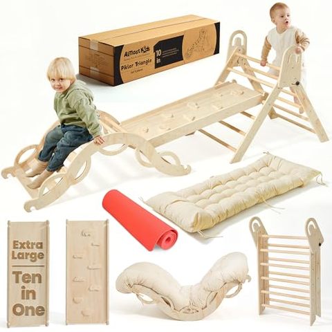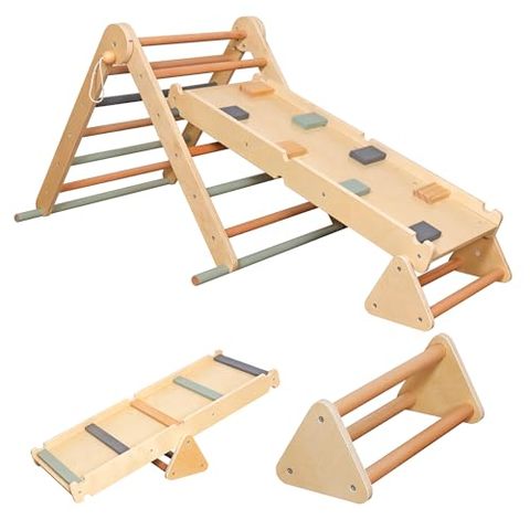 Children Fiurniture Climbing for Toddlers 1-3 and Kids Wooden Jungle Gym for Children with Tent - Triangle Ladder - Rocker Arch